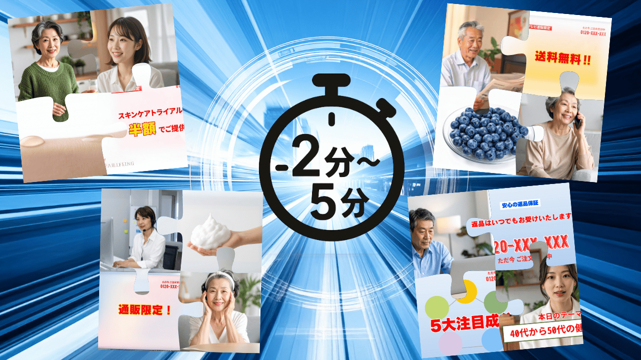 ここで言う短尺インフォマーシャルとは、2分から5分程度の尺のものを指します。特に2分から3分程度のものが主流になるかと思います。これまでは様々なジャンル別のインフォマーシャルのノウハウを書いてきましたが、そちらは29分のものを対象にしていました。29分よりも尺が短い短尺インフォマーシャルについては、独特のノウハウが必要となるため、今回はそちらを解説いたします。