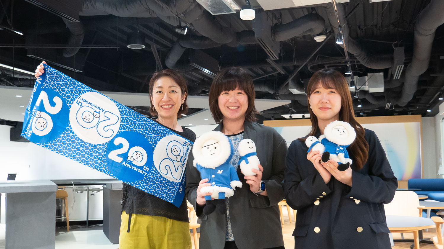ふだん、ニチレイロジグループの従業員は、物流センターや勤務しているオフィスで決められた時間内で作業をミスなく進行させる仕事に携わっている方々も多い。そうなると、作業に追われてしまって、ふだん会社の動向や自分の仕事の意義などをゆっくり振り返ることが少ないと思うんです。今回、20周年というグループ全体のイベントでステートメントの要素を盛り込んだ動画を通して当社の価値観について改めてきちんと発信し、みんなで共有できたことの大事さをすごく実感できました。そのことがとても印象に残っています。20周年記念ノベルティとして作ったキャラクターの手拭いも、一体感を作ることに一役買ってくれました。